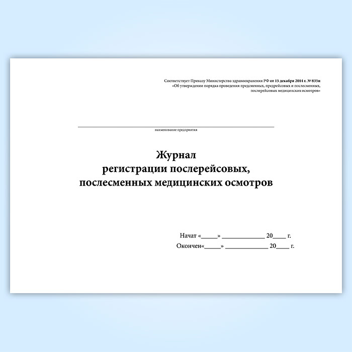 Журнал регистрации послерейсовых, послесменных медицинских осмотров в Ульяновске купить