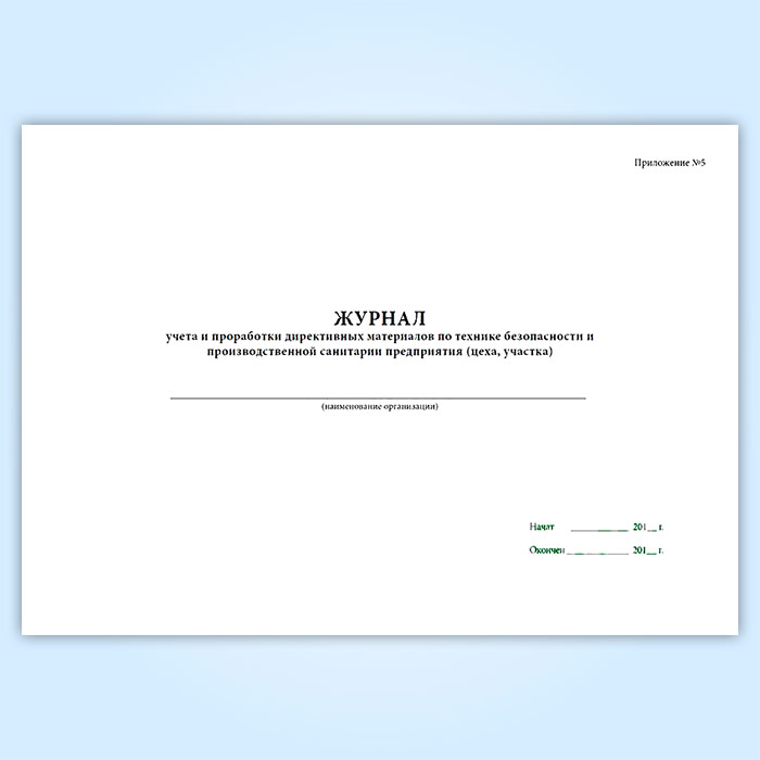 Журнал учета и проработки директивных материалов по технике безопасности и производственной санитарии предприятия (цеха, участка) в Ульяновске купить