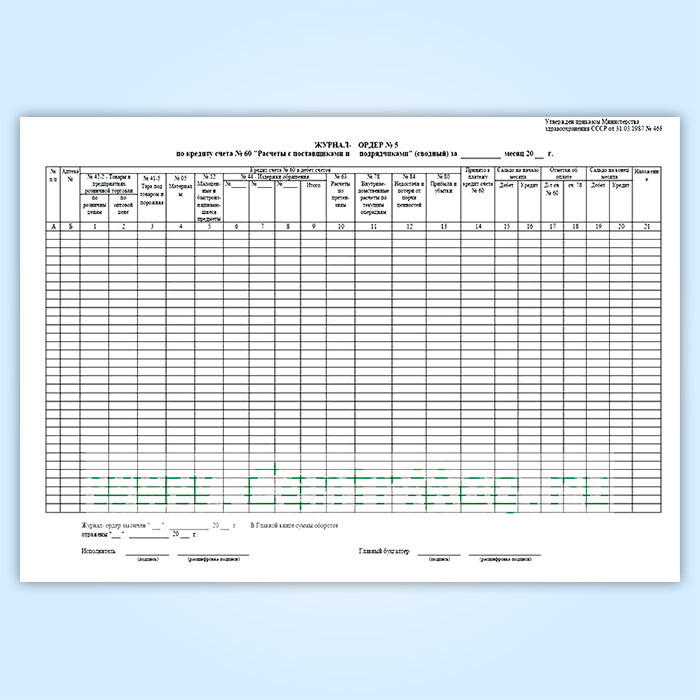 Журнал-ордер № 5 по кредиту счета № 60 «Расчеты с поставщиками и подрядчиками» (сводный) в Ульяновске купить