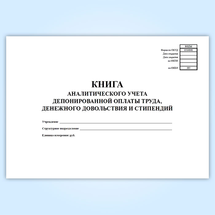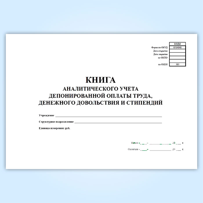 Книга аналитического учета депонированной заработной платы, денежного довольствия и стипендий (код формы 0504048) в Ульяновске купить