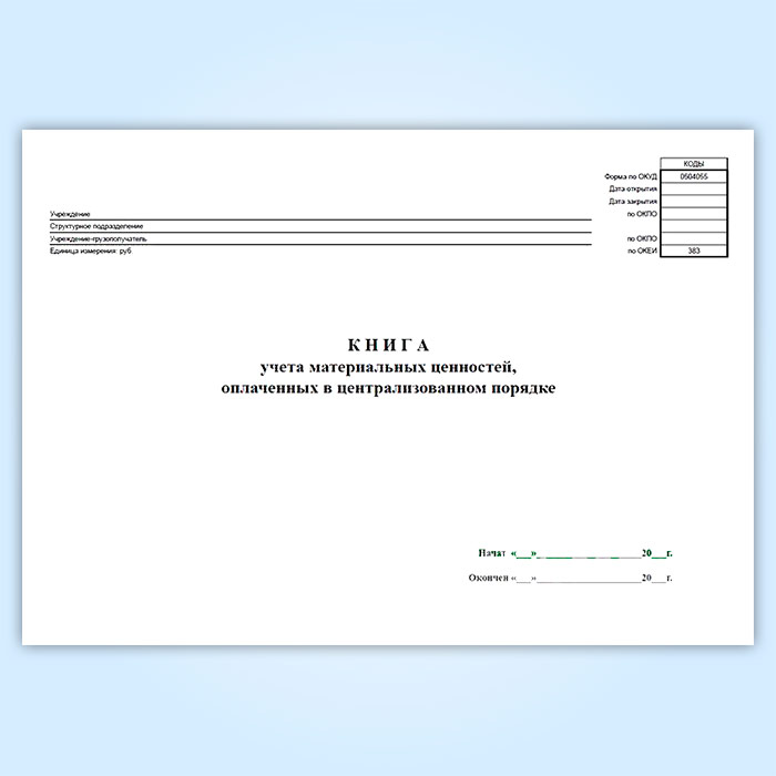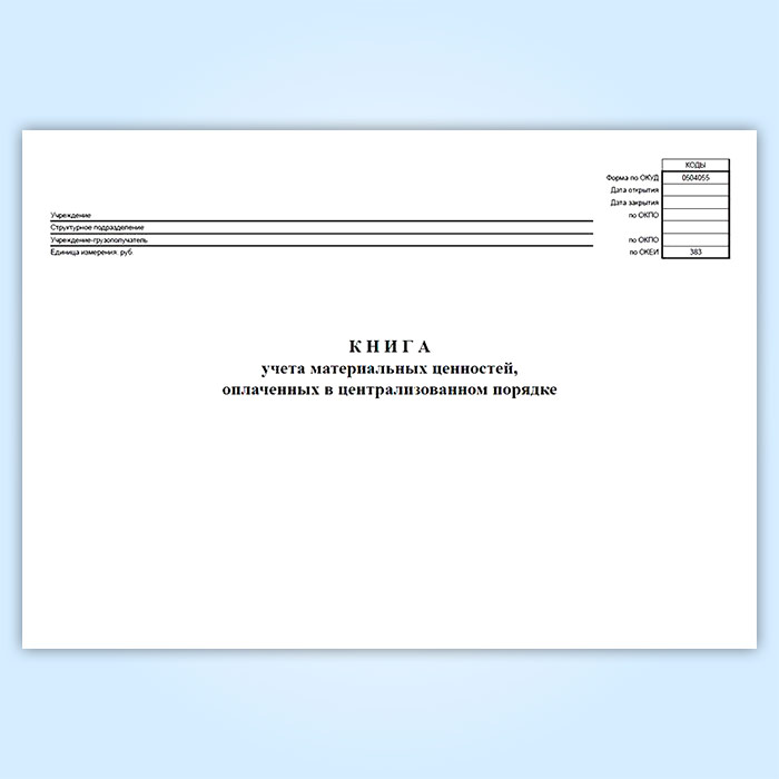 Книга учета материальных ценностей, оплаченных в централизованном порядке (код формы 0504055) в Ульяновске купить