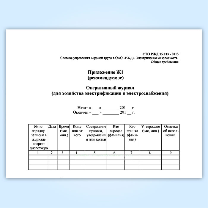Оперативный журнал (для хозяйства электрификации и электроснабжения) (СТО РЖД 15.013-2015) в Ульяновске купить