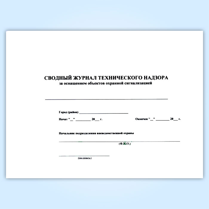 Сводный журнал технического надзора за оснащением объектов охранной сигнализацией в Ульяновске купить