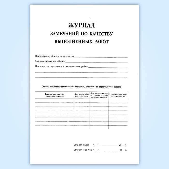 Журнал замечаний по качеству выполненных работ в Ульяновске купить