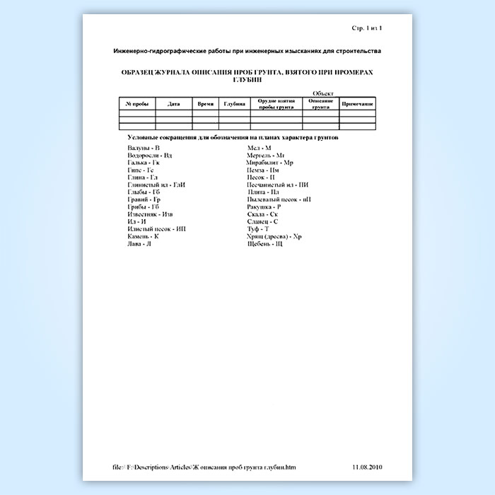 Журнал описания проб грунта, взятого при промерах в Ульяновске купить