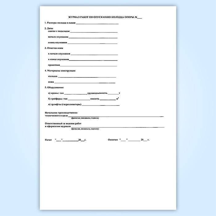 Журнал работ по опусканию колодца опоры в Ульяновске купить