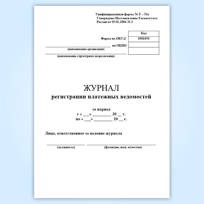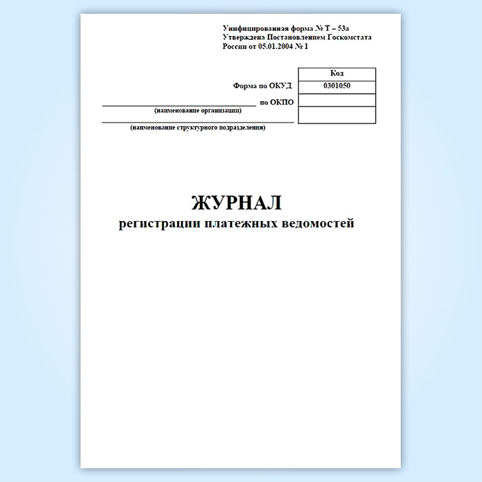 Журнал регистрации платежных ведомостей (унифицированная форма № Т-53а, форма по ОКУД 0301050) в Ульяновске купить