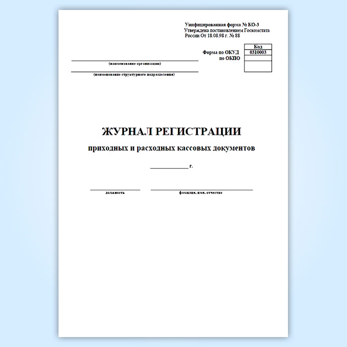 Журнал регистрации приходных и расходных кассовых документов (форма № КО-3) в Ульяновске купить