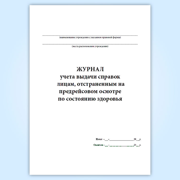 Журнал учета выдачи справок лицам, отстраненным на предрейсовом осмотре по состоянию здоровья в Ульяновске купить