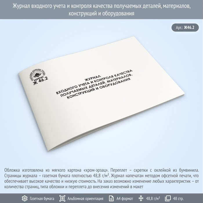 Журнал входного учета и контроля качества получаемых деталей, материалов, конструкций и оборудования (Ж46.2, 48 стр.) в Ульяновске купить