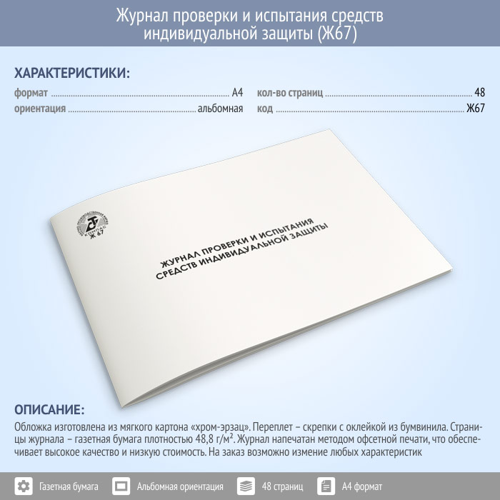 Журнал проверки и испытания средств индивидуальной защиты (48 стр., Ж67) в Ульяновске купить