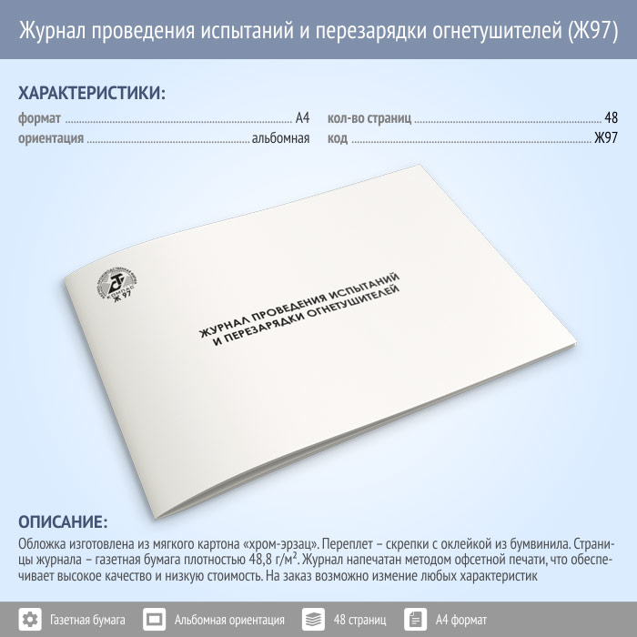 Журнал проведения испытаний и перезарядки огнетушителей (48 стр., Ж97) в Ульяновске купить