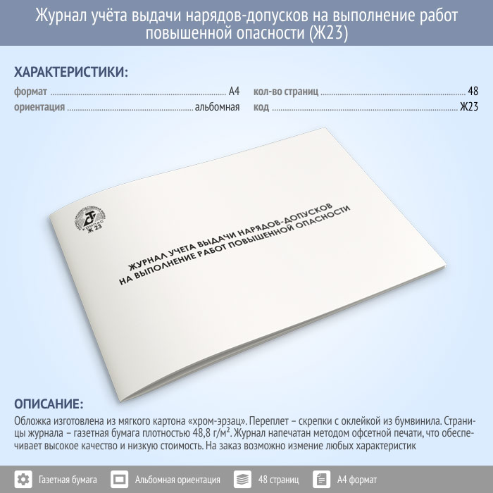 Журнал учета выдачи нарядов-допусков на выполнение работ повышенной опасности (48 стр., Ж23) в Ульяновске купить