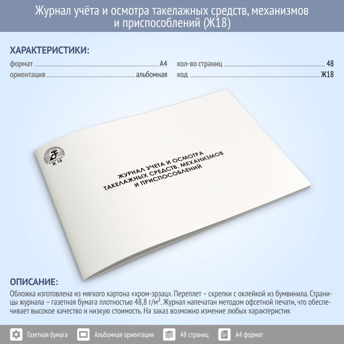 Журнал учета и осмотра такелажных средств, механизмов и приспособлений (48 стр., Ж18) в Ульяновске купить