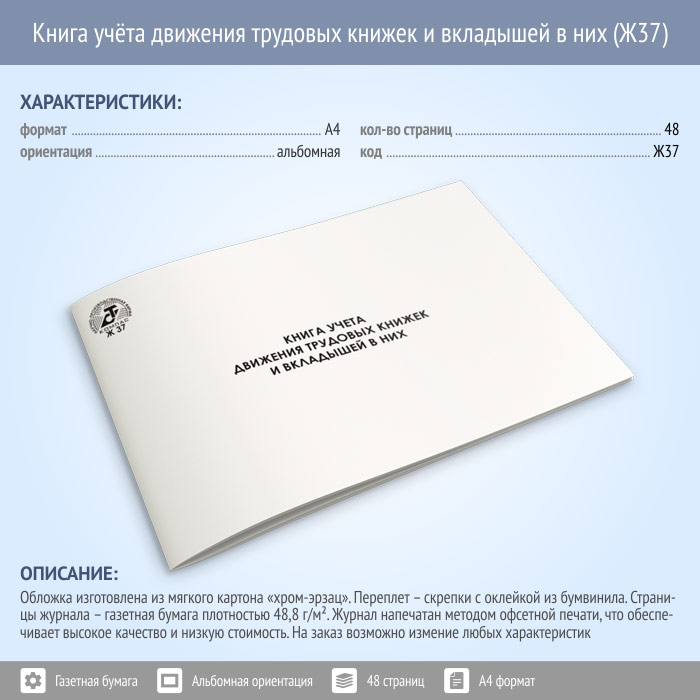 Книга учета движения трудовых книжек и вкладышей в них (48 стр., Ж37) в Ульяновске купить