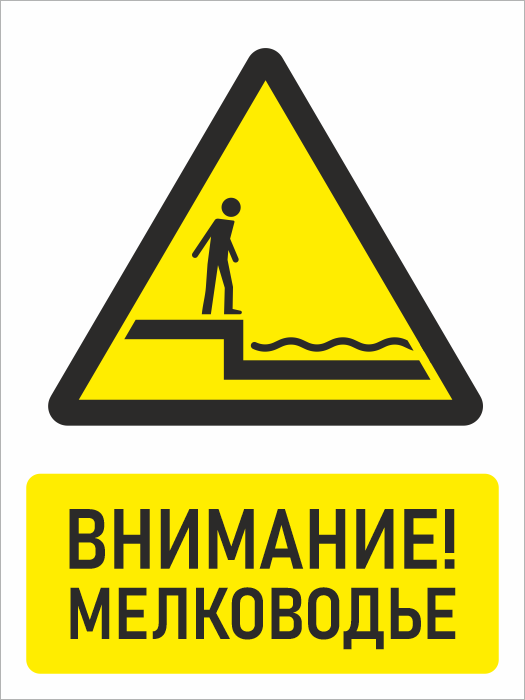 Знак «Внимание! Мелководье», БВ-29 как уже видно из названия, предостерегает об опасности в основном ныряния в связи с малой глубиной