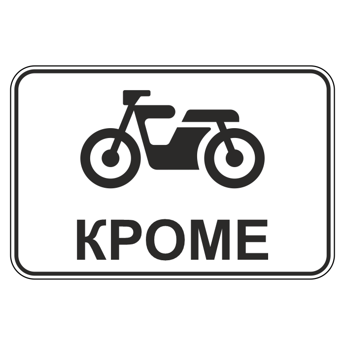 Дорожный знак 8.4.12 «Кроме вида транспортного средства» (металл 0,8 мм, II типоразмер: 470х700 мм, С/О пленка: тип В алмазная) в Ульяновске купить