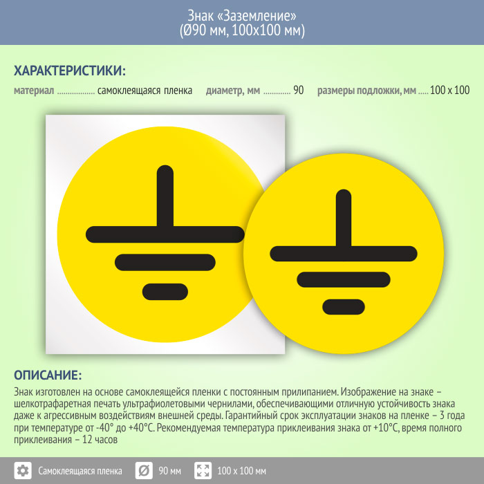 Знак (плакат) «Заземление», S46 (пленка, диаметр 90 мм, 100х100 мм) в Ульяновске купить