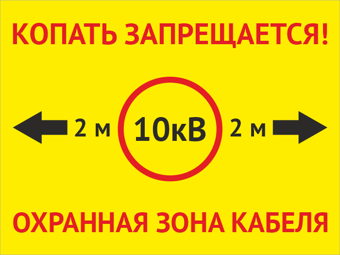 Табличка «Охранная зона кабеля 10 кВ. Копать запрещается», OZK-01 (металл, 400х300 мм) в Ульяновске купить