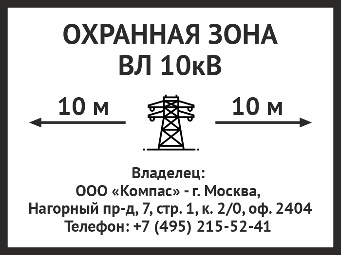 Знак «Охранная зона ВЛ 10 кВ (высоковольтной линии)», OZK-07 (металл, 400х300 мм) в Ульяновске купить