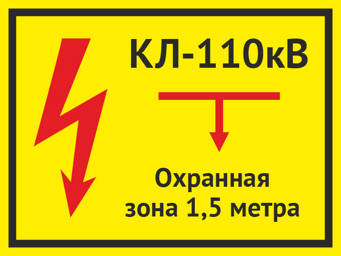 Табличка «КЛ 110 кВ, охранная зона 1.5 метра», OZK-08 (пластик 2 мм, 400х300 мм) в Ульяновске купить