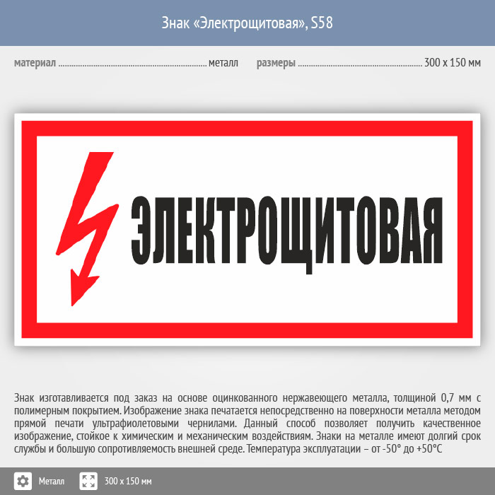 Знак (плакат) «Электрощитовая», S58 (металл, 300х150 мм) в Ульяновске купить