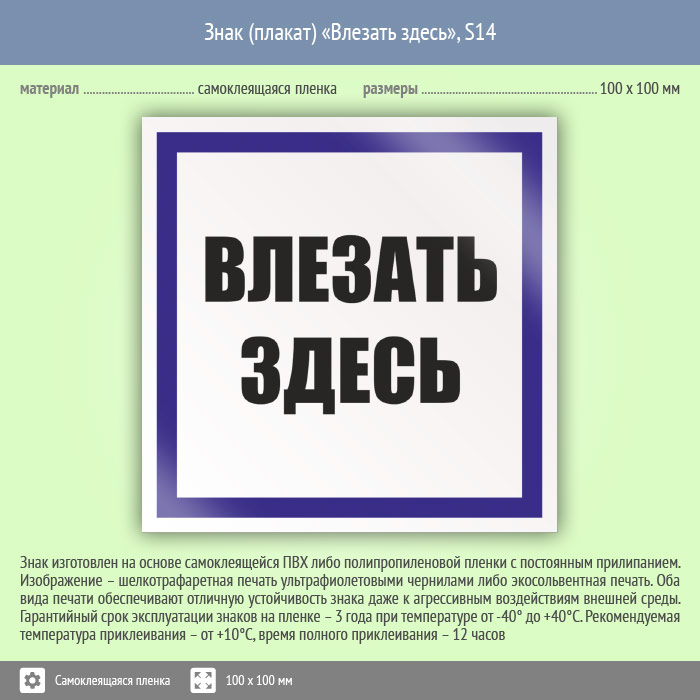 Знак (плакат) «Влезать здесь», S14 (пленка, 100х100 мм) в Ульяновске купить