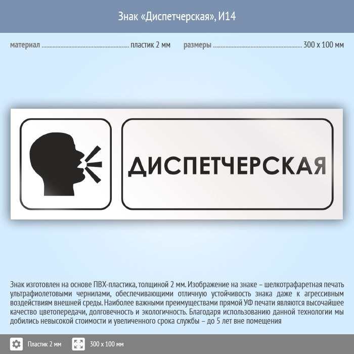 Знак «Диспетчерская», И14 (пластик, 300х100 мм) в Ульяновске купить