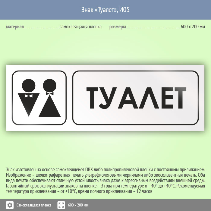 Знак «Туалет», И05 (пленка, 600х200 мм) в Ульяновске купить