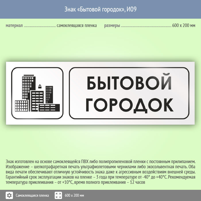 Знак «Бытовой городок», И09 (пленка, 600х200 мм) в Ульяновске купить