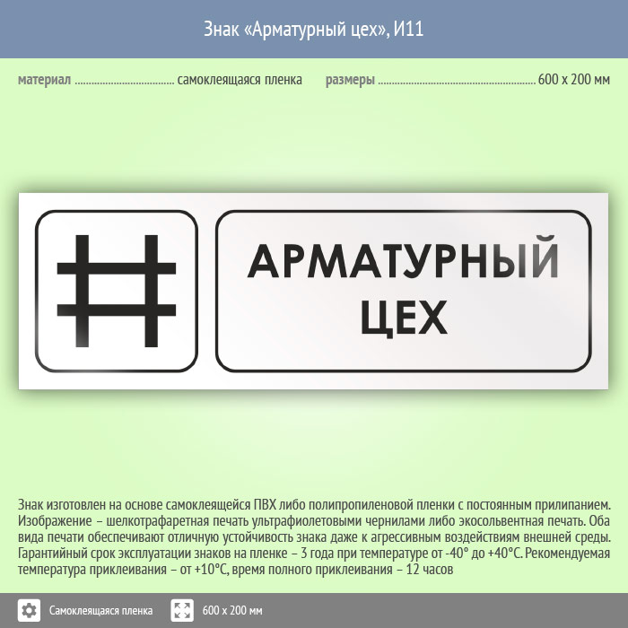 Знак «Арматурный цех», И11 (пленка, 600х200 мм) в Ульяновске купить