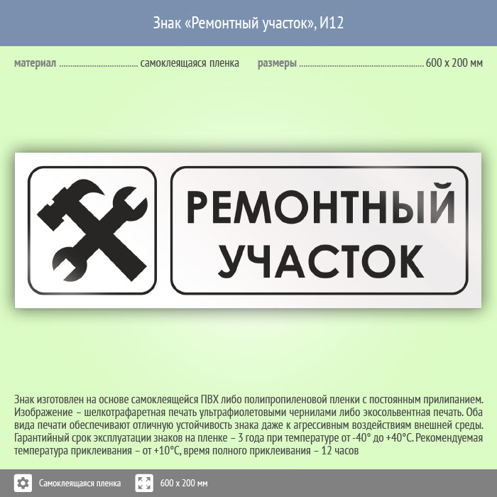 Знак «Ремонтный участок», И12 (пленка, 600х200 мм) в Ульяновске купить