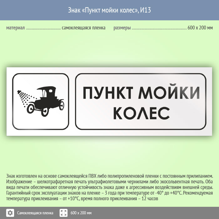 Знак «Пункт мойки колес», И13 (пленка, 600х200 мм) в Ульяновске купить