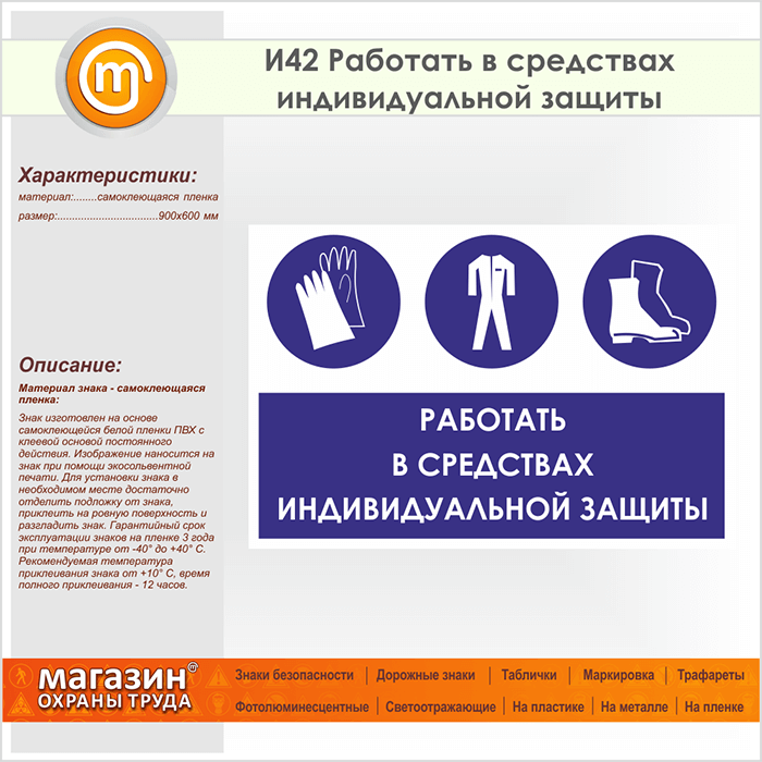 Знак «Работать в средствах индивидуальной защиты», И42 (пленка, 900х600 мм) в Ульяновске купить