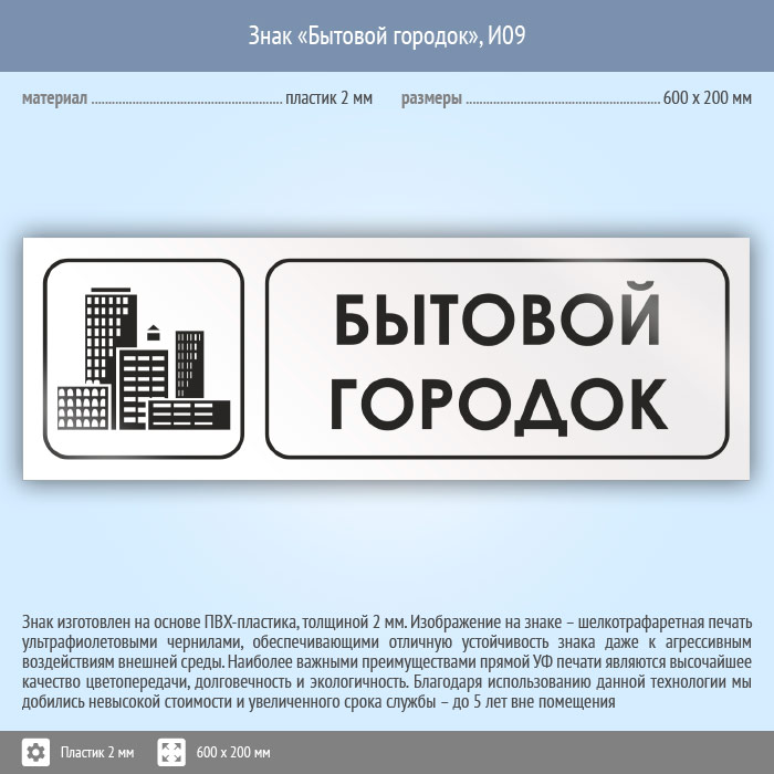 Знак «Бытовой городок», И09 (пластик, 600х200 мм) в Ульяновске купить