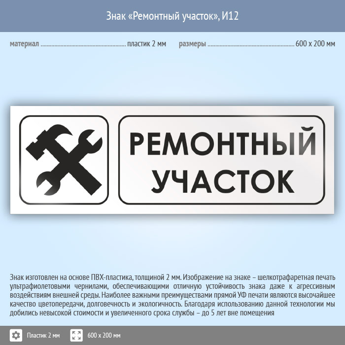 Знак «Ремонтный участок», И12 (пластик, 600х200 мм) в Ульяновске купить