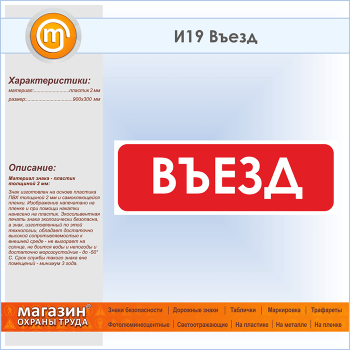Знак «Въезд», И19 (пластик, 900х300 мм) в Ульяновске купить