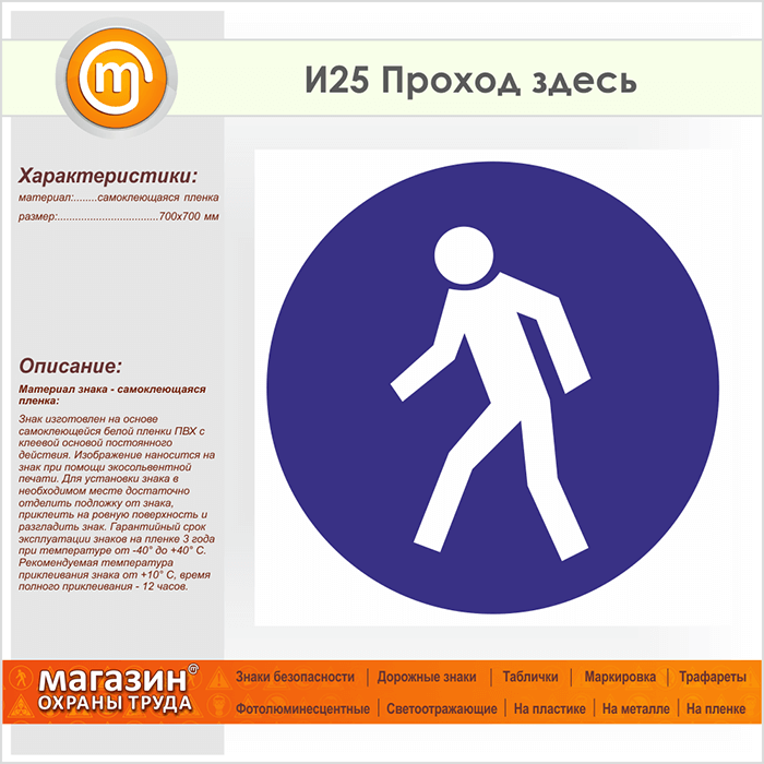 Знак «Проход здесь», И25 (пленка, 700х700 мм) в Ульяновске купить