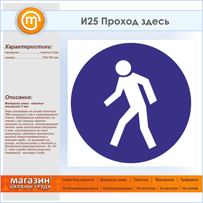 Знак «Проход здесь», И25 (пластик, 700х700 мм) в Ульяновске купить