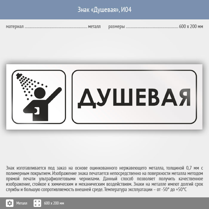 Знак «Душевая», И04 (металл, 600х200 мм) в Ульяновске купить