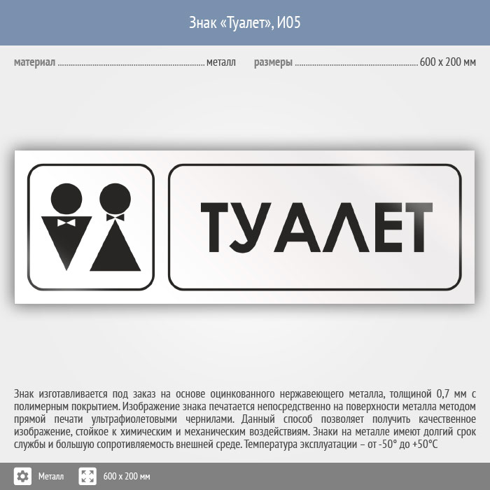 Знак «Туалет», И05 (металл, 600х200 мм) в Ульяновске купить