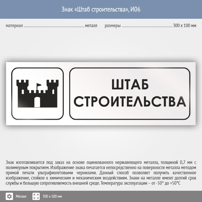 Знак «Штаб строительства», И06 (металл, 300х100 мм) в Ульяновске купить