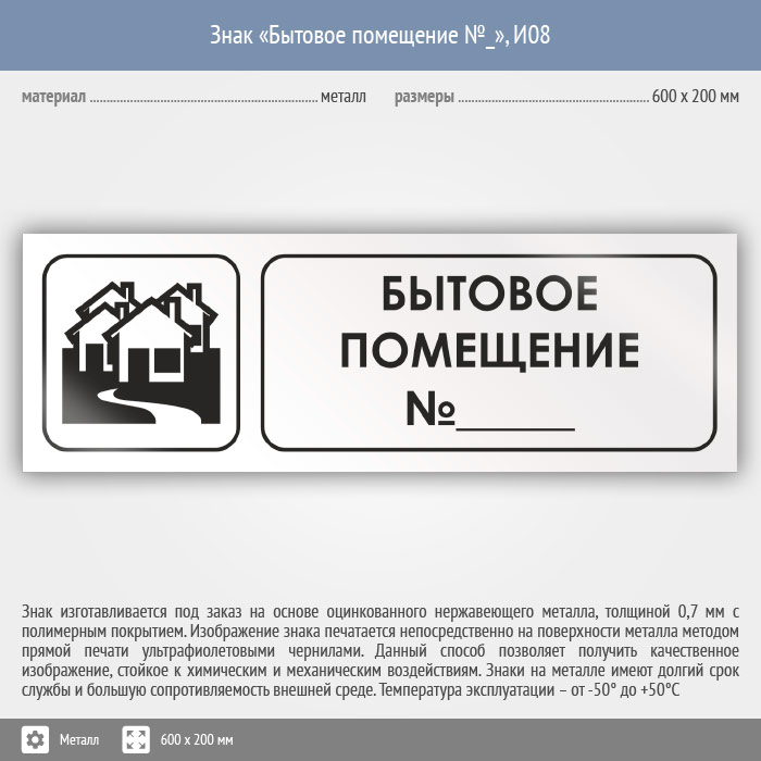 Знак «Бытовое помещение №_», И08 (металл, 600х200 мм) в Ульяновске купить