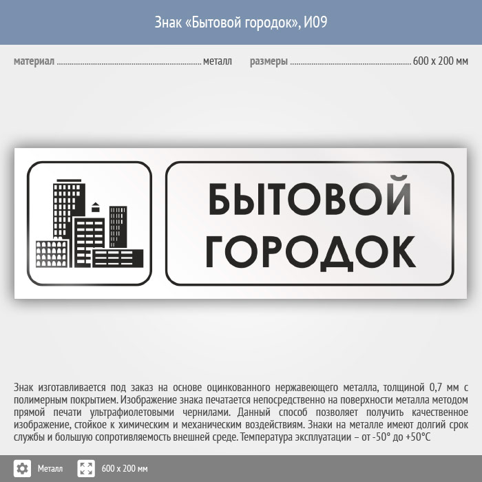 Знак «Бытовой городок», И09 (металл, 600х200 мм) в Ульяновске купить
