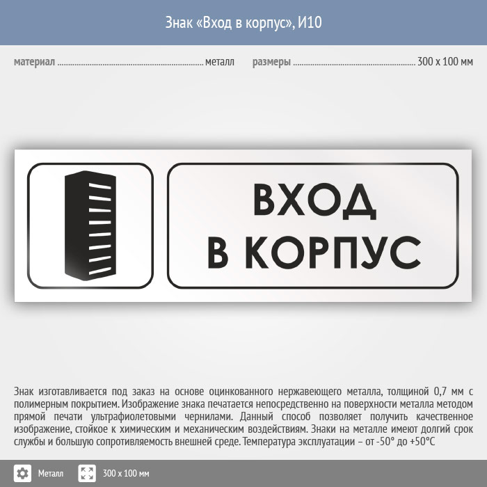 Знак «Вход в корпус», И10 (металл, 300х100 мм) в Ульяновске купить