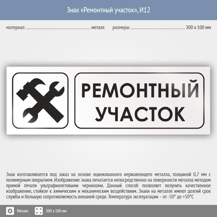 Знак «Ремонтный участок», И12 (металл, 300х100 мм) в Ульяновске купить