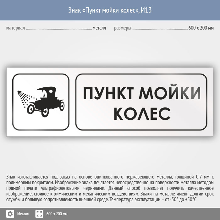 Знак «Пункт мойки колес», И13 (металл, 600х200 мм) в Ульяновске купить