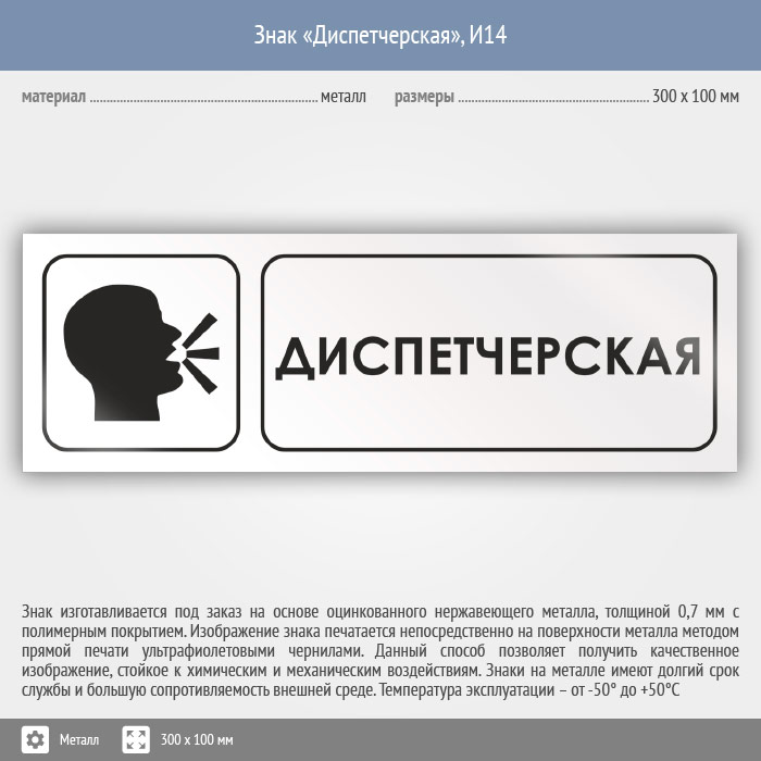 Знак «Диспетчерская», И14 (металл, 300х100 мм) в Ульяновске купить
