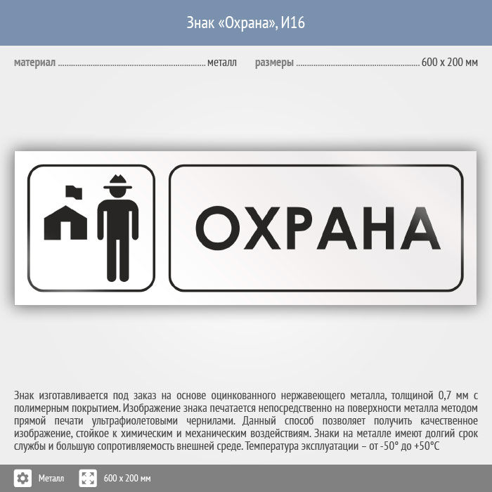 Знак «Охрана», И16 (металл, 600х200 мм) в Ульяновске купить
