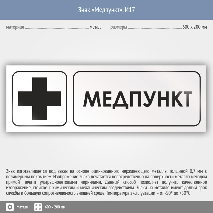 Знак «Медпункт», И17 (металл, 600х200 мм) в Ульяновске купить